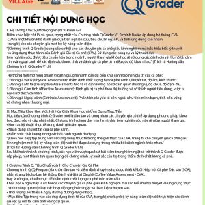 - Nhập môn CVA: Giới thiệu về hệ thống Đánh giá Giá trị Cà phê và Đánh giá Vật lý (Physical Assessment), tập trung vào việc đánh giá cà phê xanh (khiếm khuyết, độ ẩm, kích thước hạt).