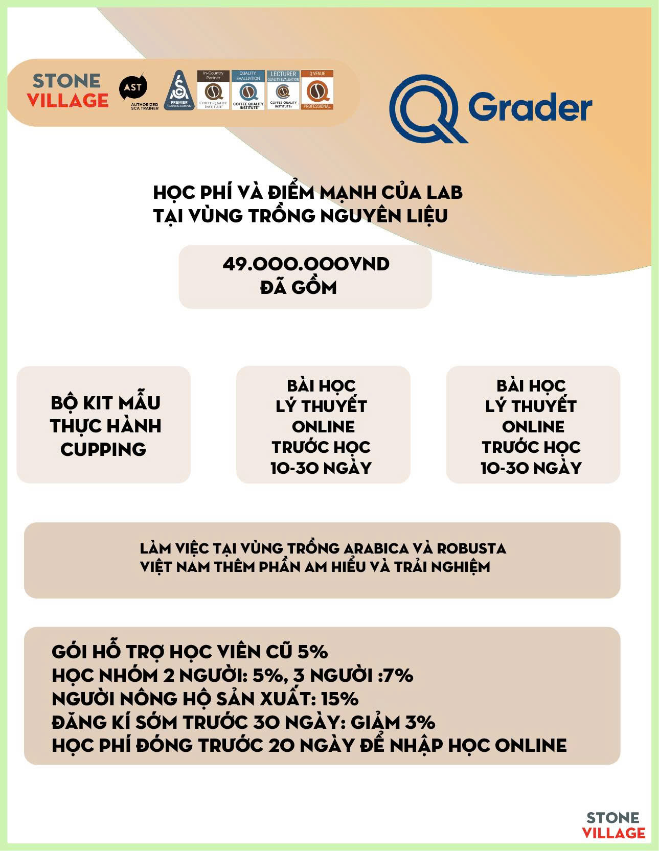 Đầy đủ theo tiêu chuẩn SCA Campus, CQI Lab đã đăng kí từ năm 2020 đến nay, đây là dịp lý tưởng để dành đến bạn những thách thức của lớp học khó và cơ hội ở lâu hiểu vùng nguyên liệu.
